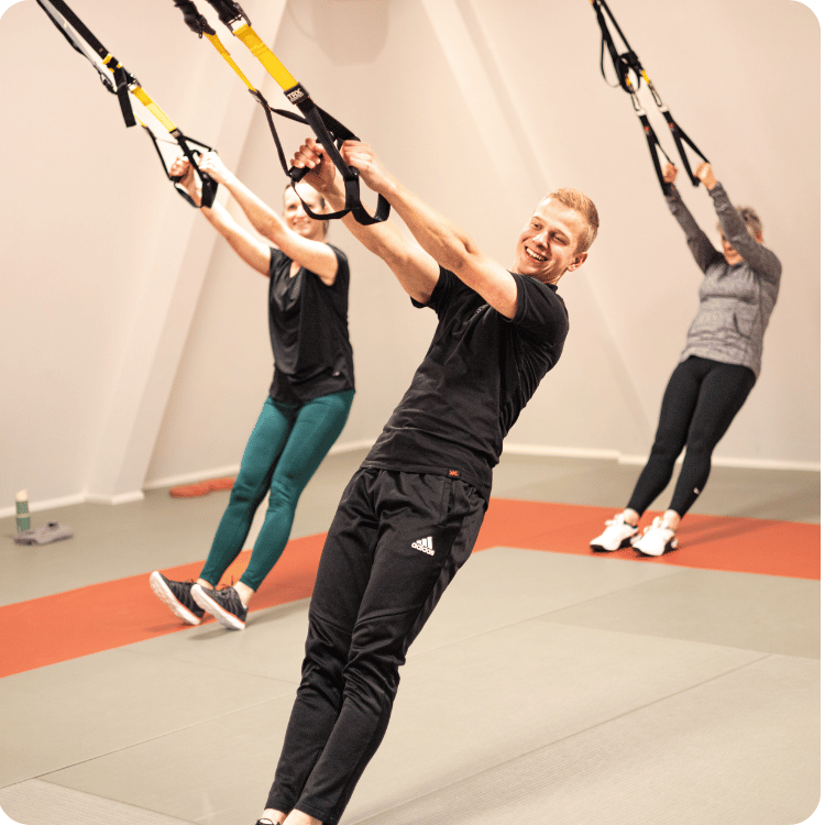 Doordat je traint met je eigen lichaam wordt er een groot beroep gedaan op je ‘core’ (diepe buik- en rugspieren). Bij de TRX-les kun je het jezelf zo zwaar maken als je wilt, door schuiner te gaan staan bij een oefening wordt deze zwaarder en rechterop juist lichter. Zo zorg jij zelf dat de les een uitdaging wordt.